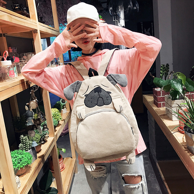 Cartoon animal corduroy shoulder bag backpack large capacity schoolbag