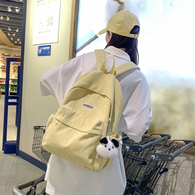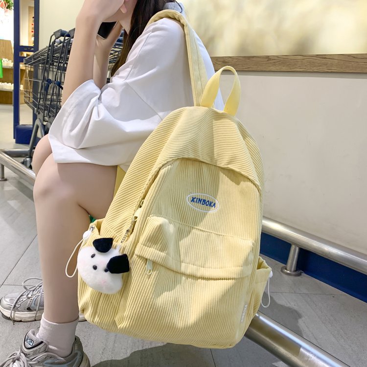 Japanese simple corduroy schoolbag for girls