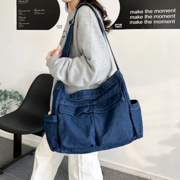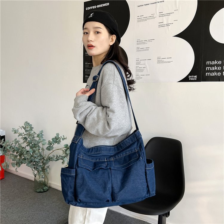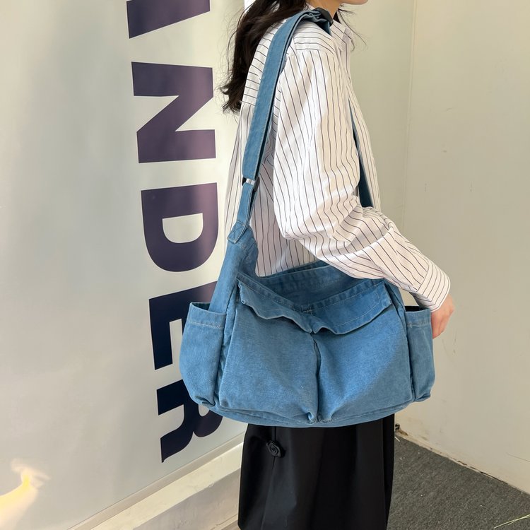 Backpack fabric: denim fabric Backpack weight: 0.42kg Backpack use: single shoulder crossbody Width:42cm Height:32cm Thickness:15cm